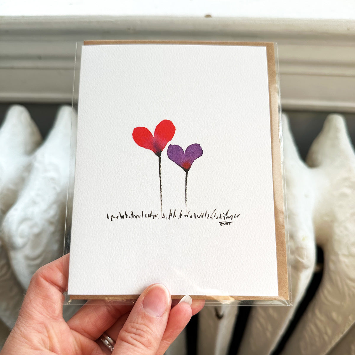 This product is a single A2 card, featuring artwork that was originally done by hand with watercolor and ink by Capitol Hill artist, Erin Thompson, and then printed on textured stock to resemble watercolor paper. Comes with a kraft envelope. Blank inside.